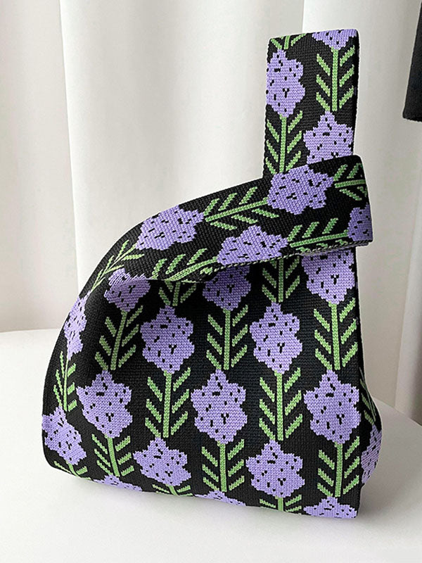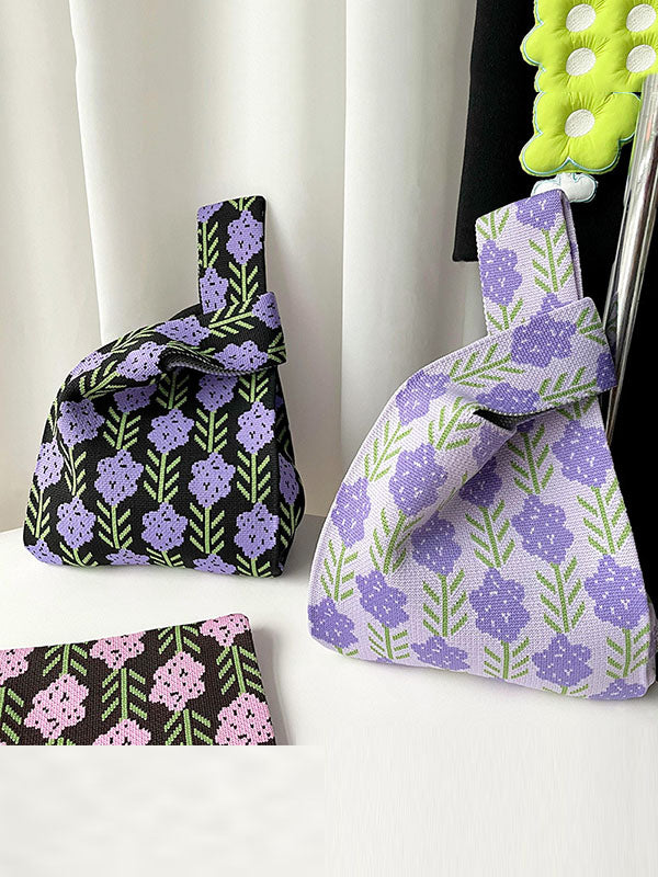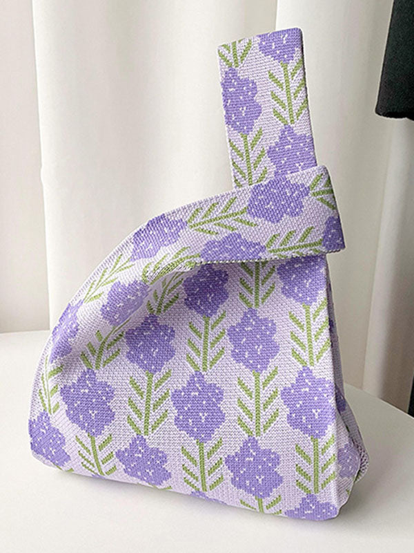 Original Contrast Color Lavender Floral Woven Handbags Bags Accessories