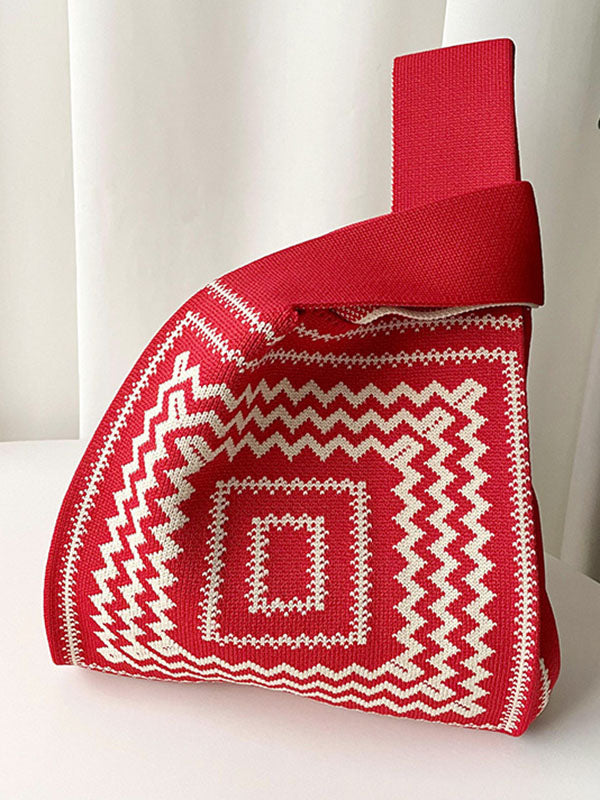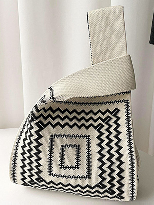 Original Contrast Color Wave Square Woven Handbags Bags Accessories