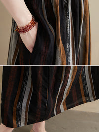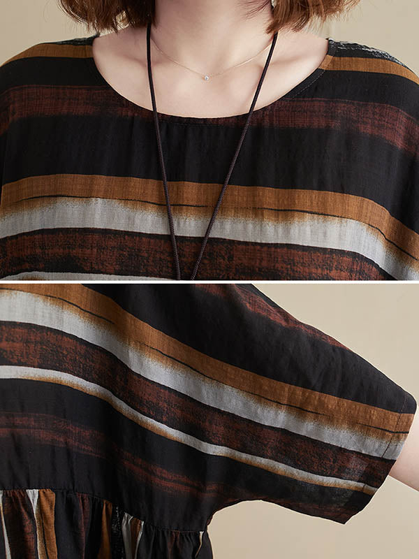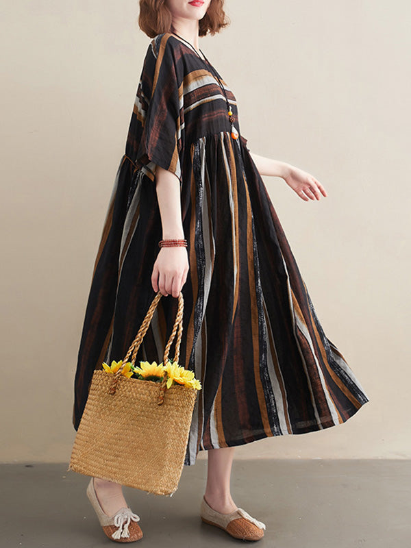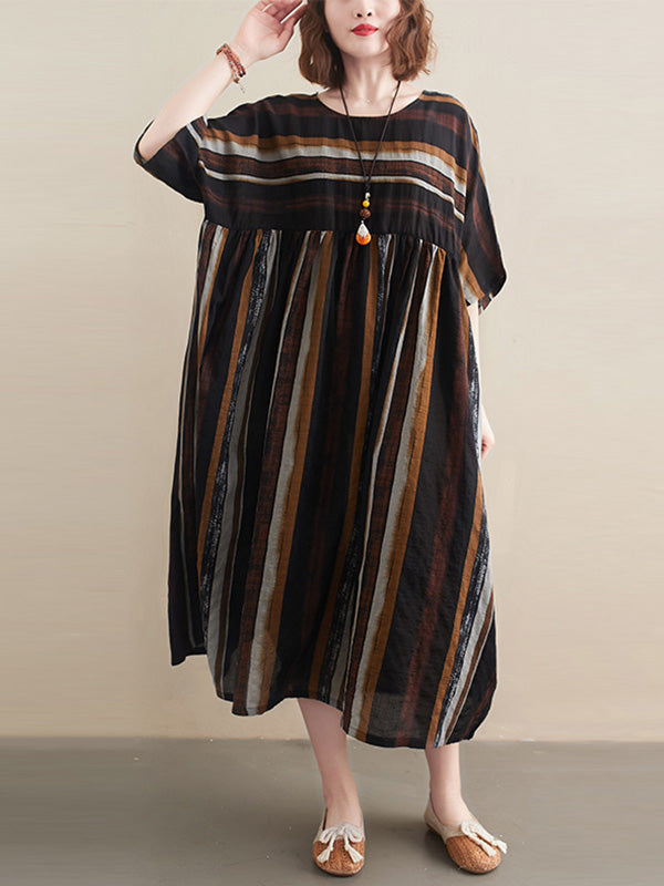 Original Cotton Blend Stripe Half Sleeve Maxi Dress