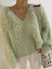 Original Creation Long Sleeves Loose Solid Color V-Neck Sweater Tops