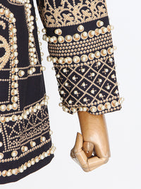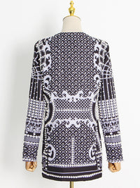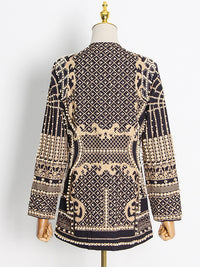 Original Creation Loose Long Sleeves Beads Printed V-Neck Blazer Outerwear