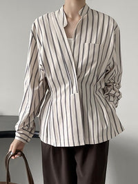 Original Creation Loose Long Sleeves Striped V-Neck Blouses&Shirts Tops