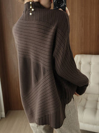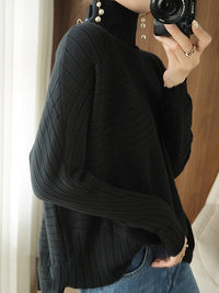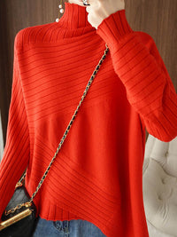 Original Irregular 7 Colors High-Neck Long Sleeves Sweater Top