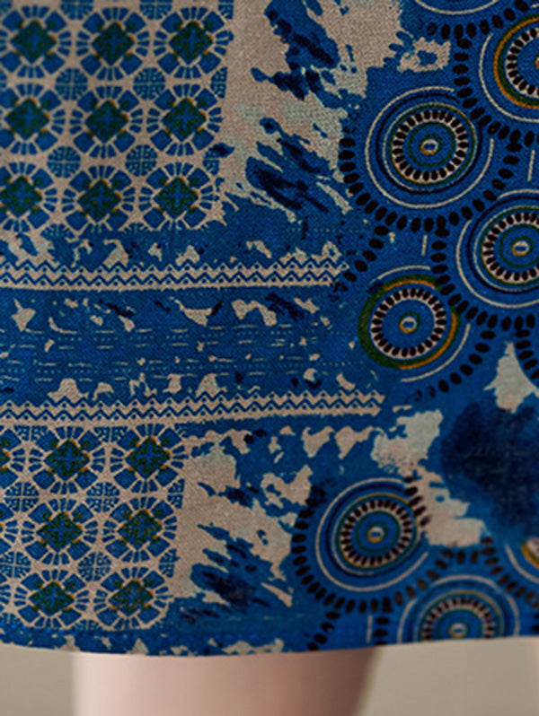 Original Loose Short Sleeves Contrast Color Printed Round-Neck Midi Dresses