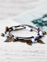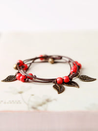 Original National Handmade 7 Colors Ceramic Bead Alloy Leaf Bracelet
