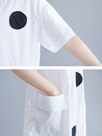 Original Short Sleeves Loose Contrast Color Polka-Dot Round-Neck Midi Dresses