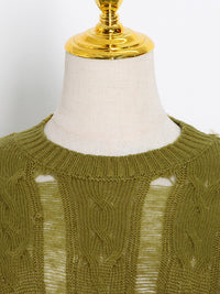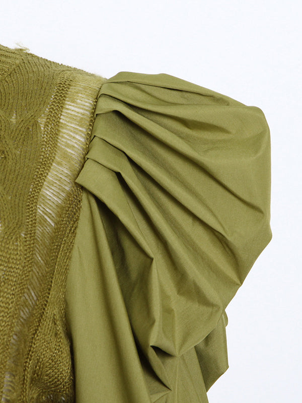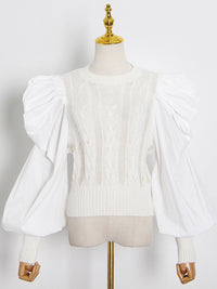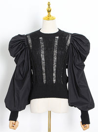 Original Skinny Puff Sleeves Hollow Split-Joint Round-Neck Sweater Tops