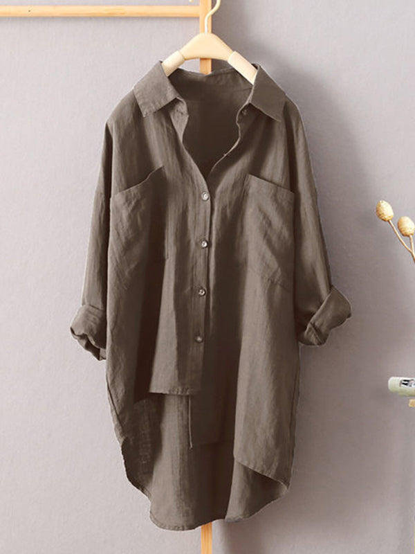Original Solid Irregularity Lapel Shirt Blouse Tops