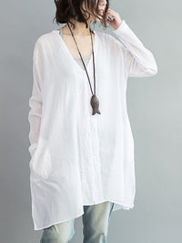 Original Solid Sun-Protection V-Neck Blouse Tops