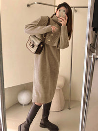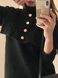 Original Stylish Buttoned Shawl High-Neck Long Sleeves Sweater Dress