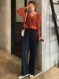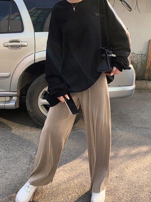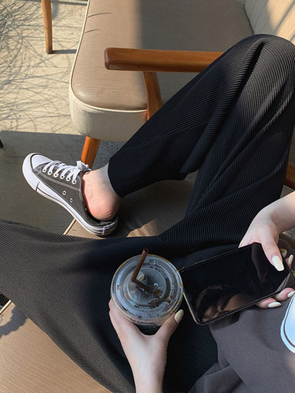Pleated Solid Color Comfortable Casual Loose Wide-Leg Pants