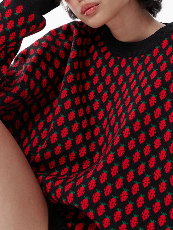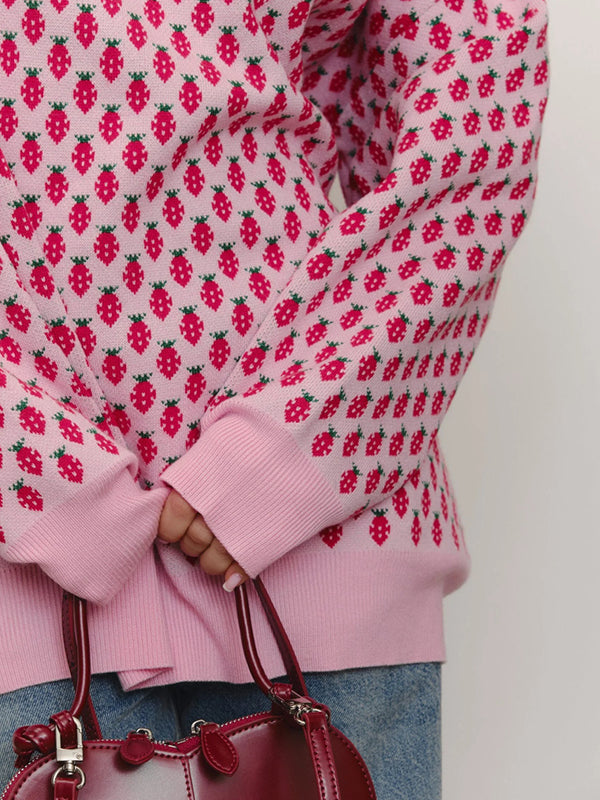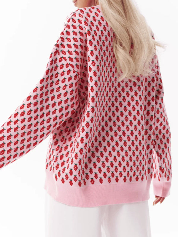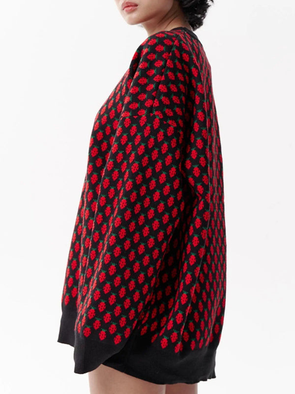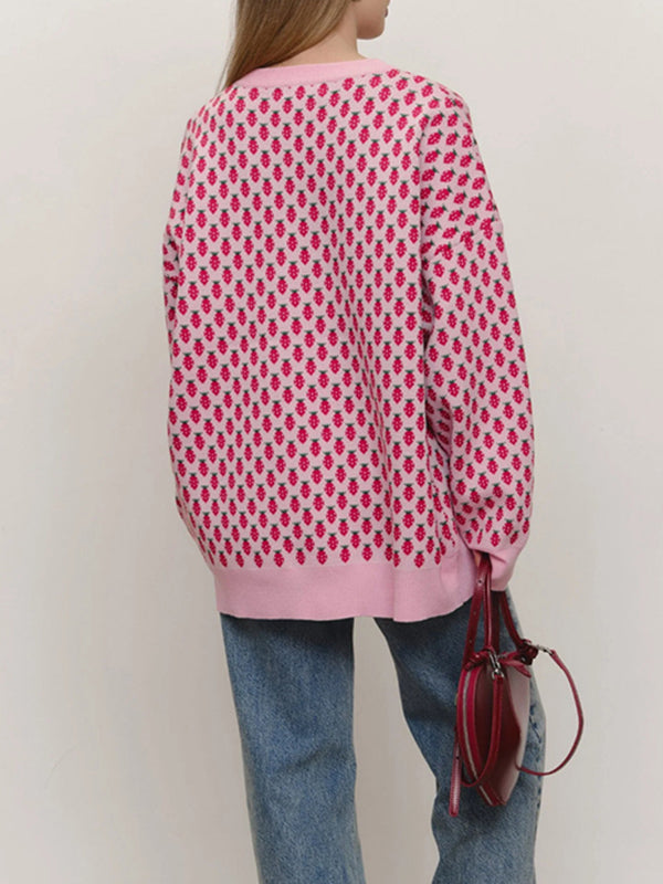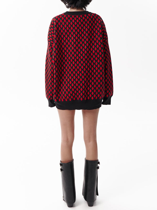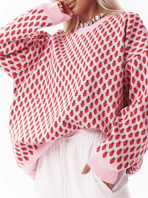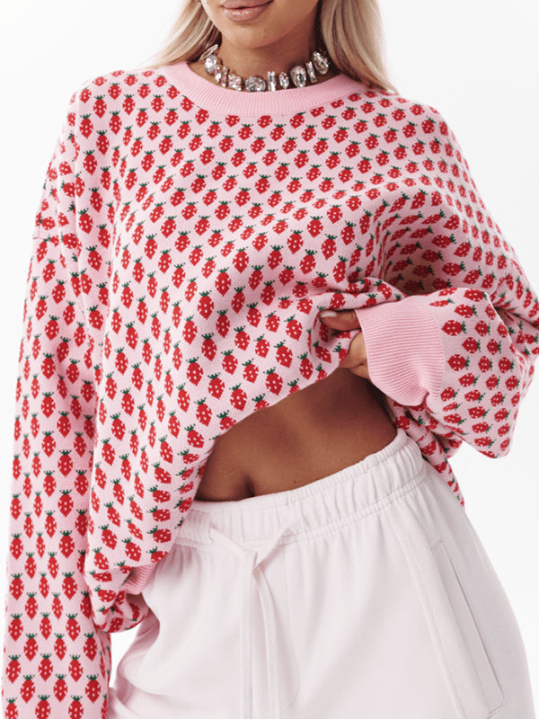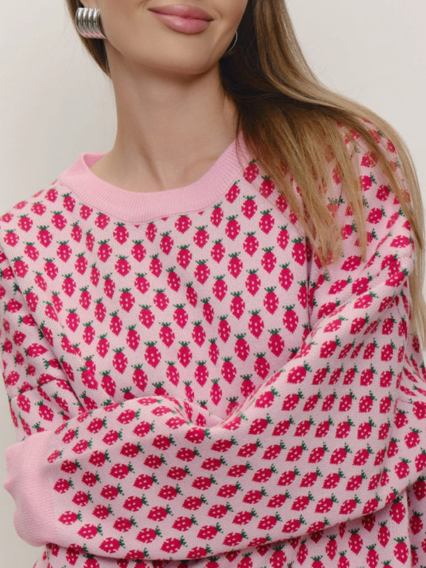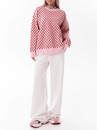 Pleated Split-Joint Long Sleeves Loose Round-Neck Sweater Tops