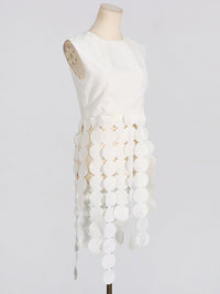 Polka-Dot Solid Color Split-Joint Tasseled Sleeveless Round-Neck Vest Top