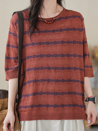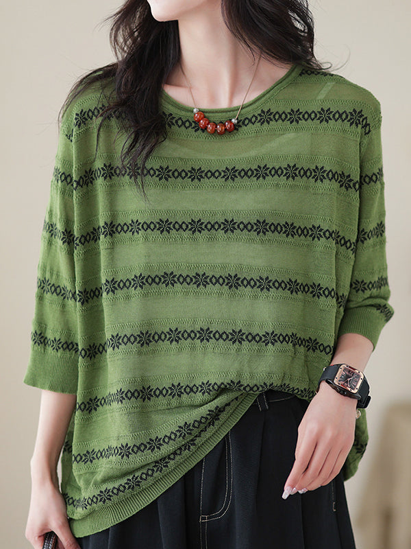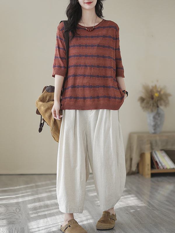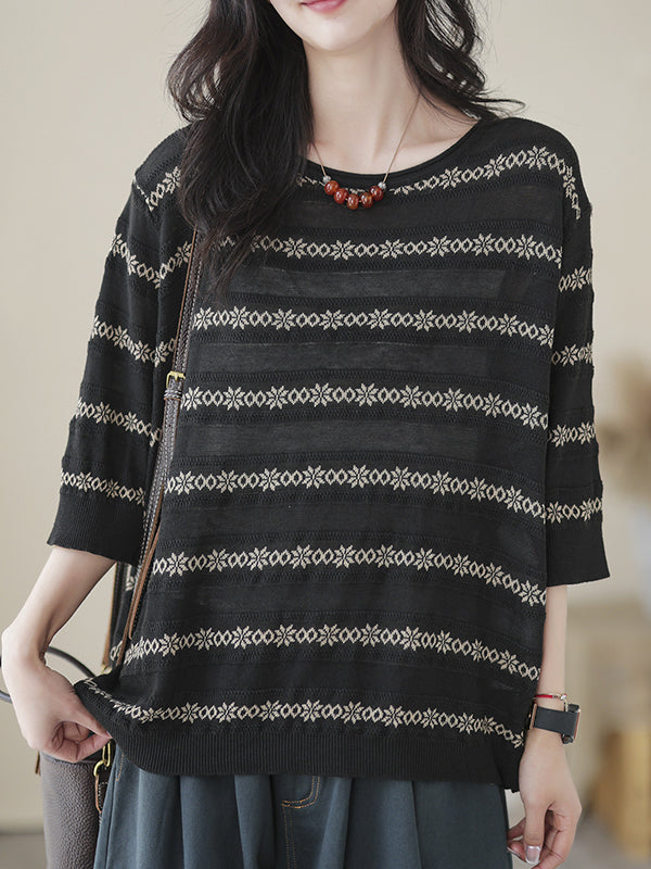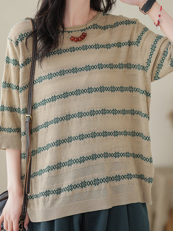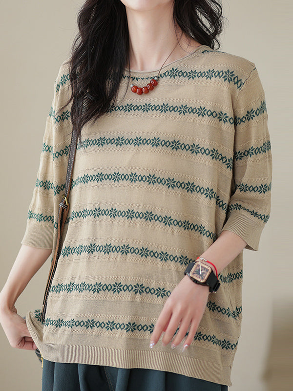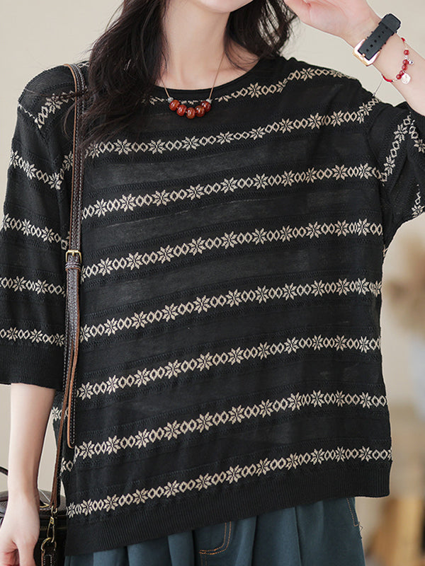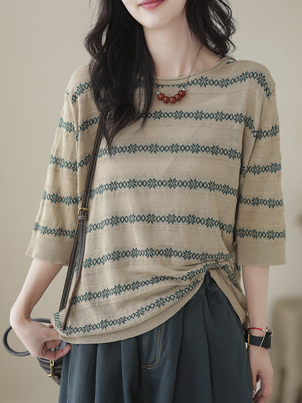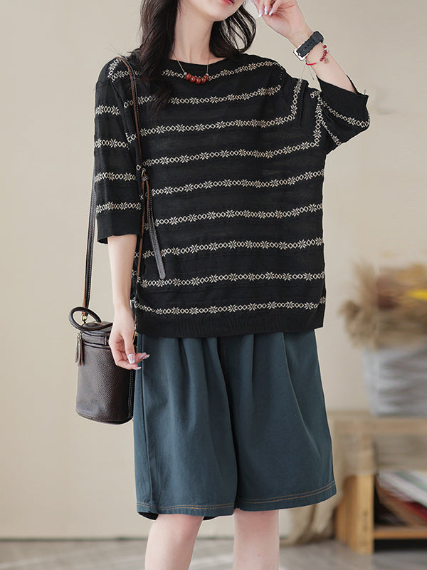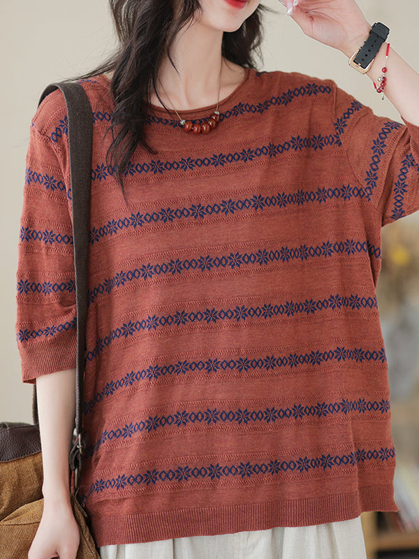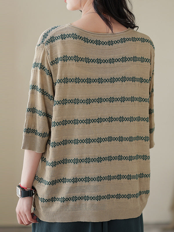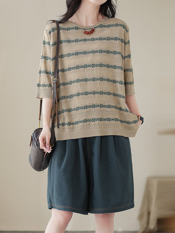 Printed Half Sleeves Loose Round-neck T-Shirts Tops