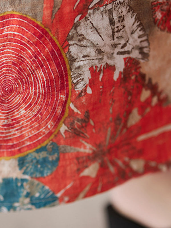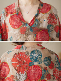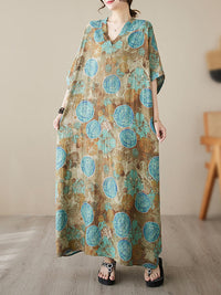 Printed Loose Short Sleeves V-Neck Maxi Dresses