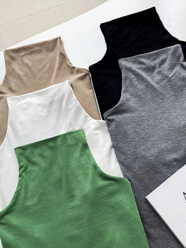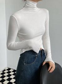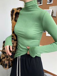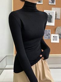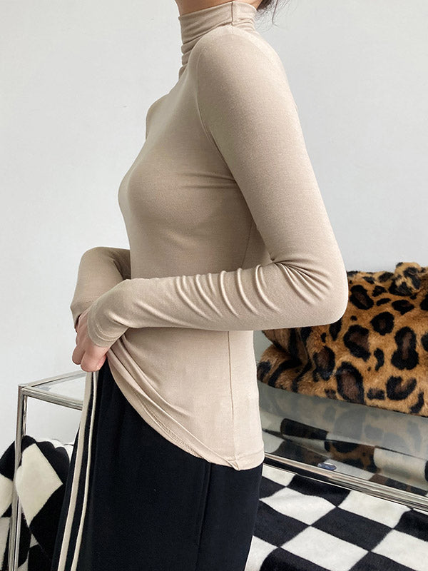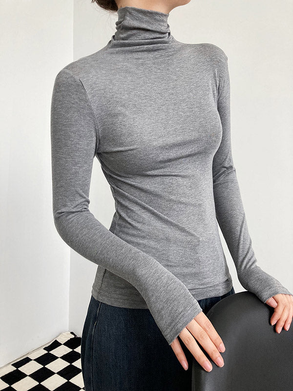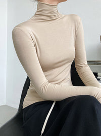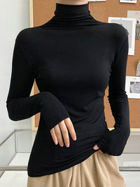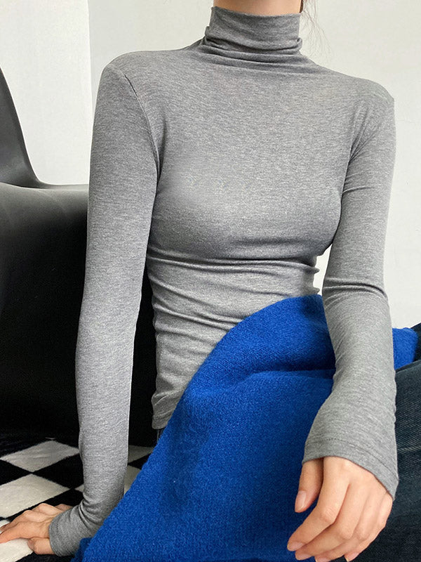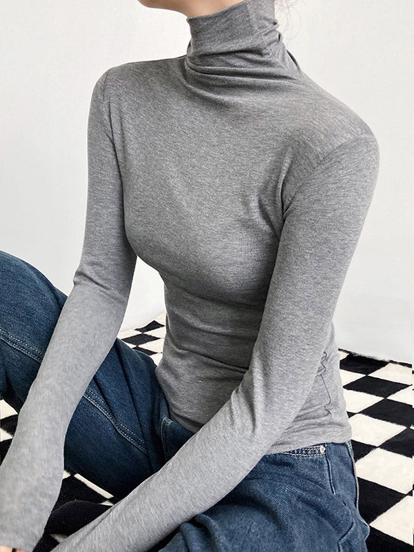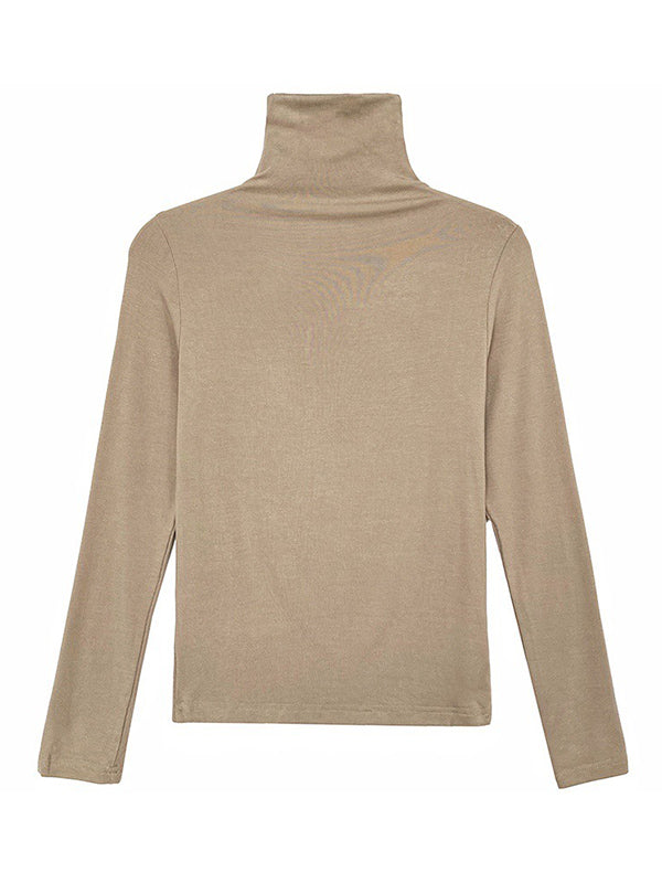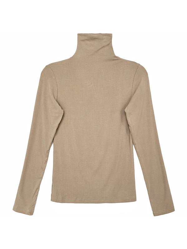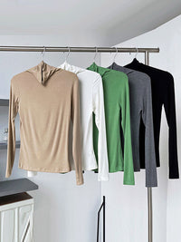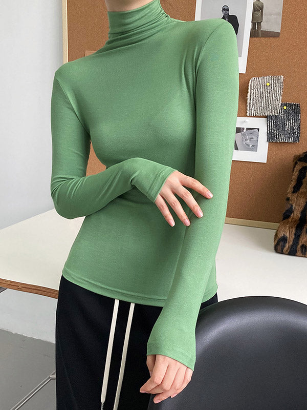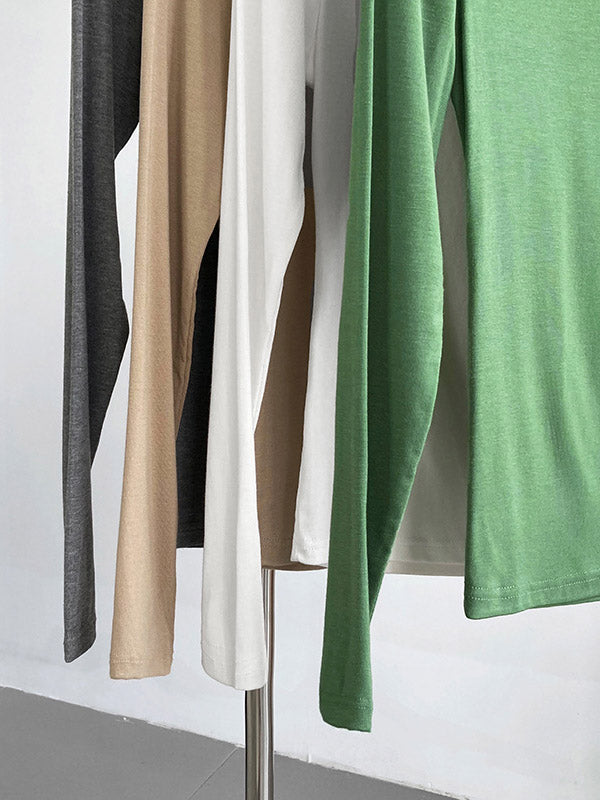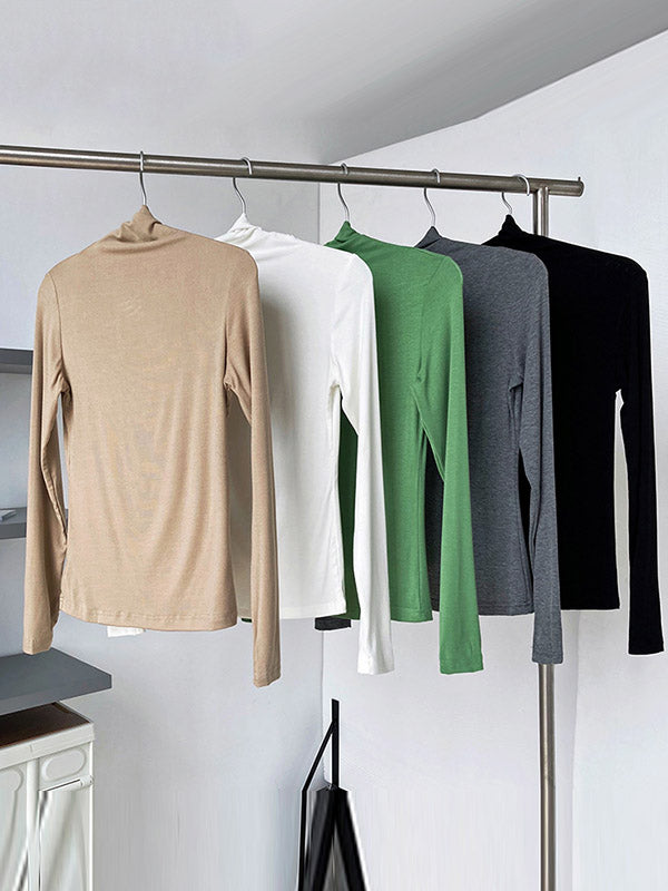 Simple 5 Colors Modal High-Neck Long Sleeves T-Shirt Top