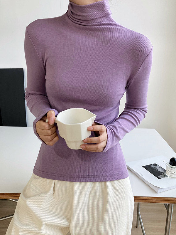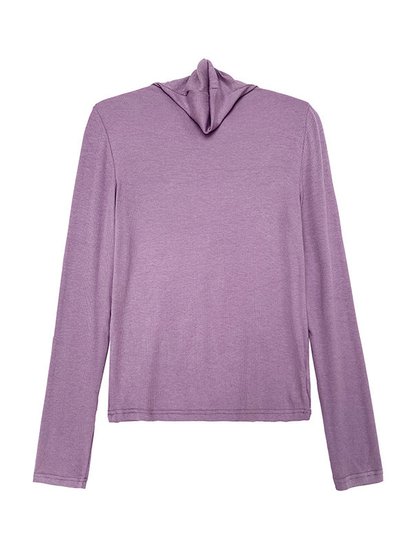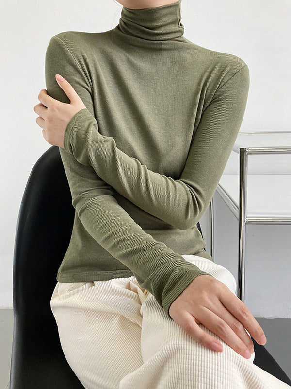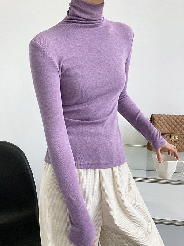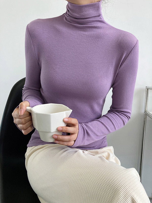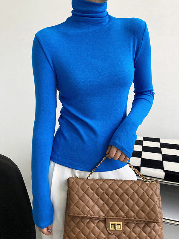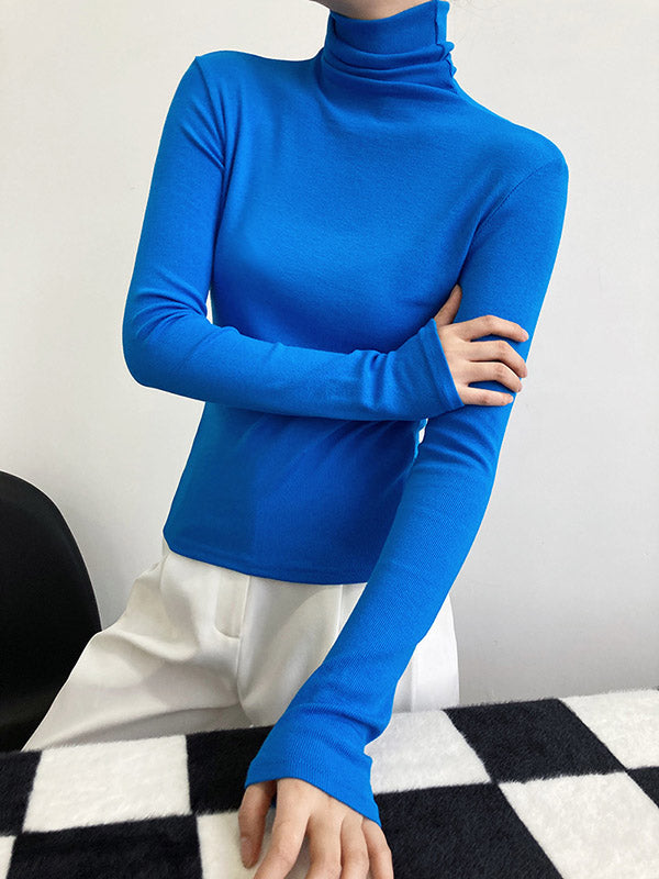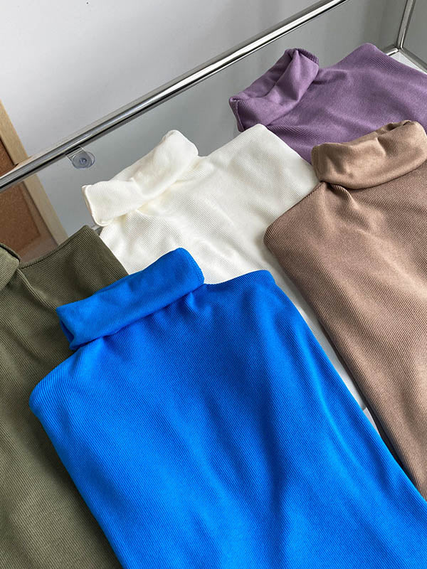 Simple 6 Colors Heaps Collar Long Sleeves Knitting T-Shirt Top