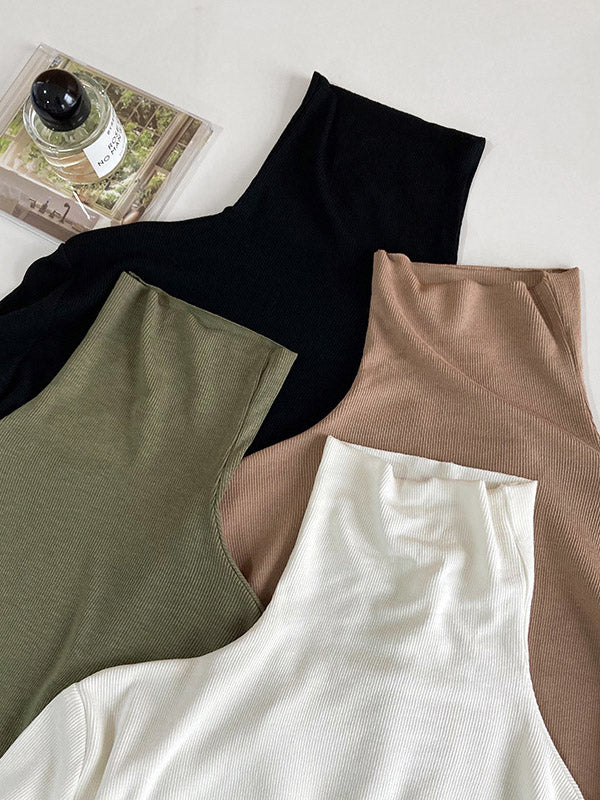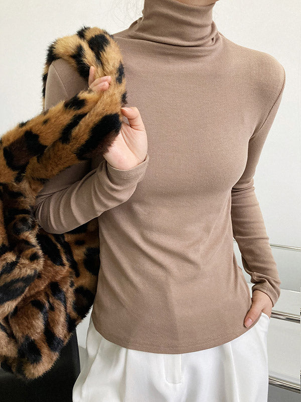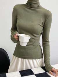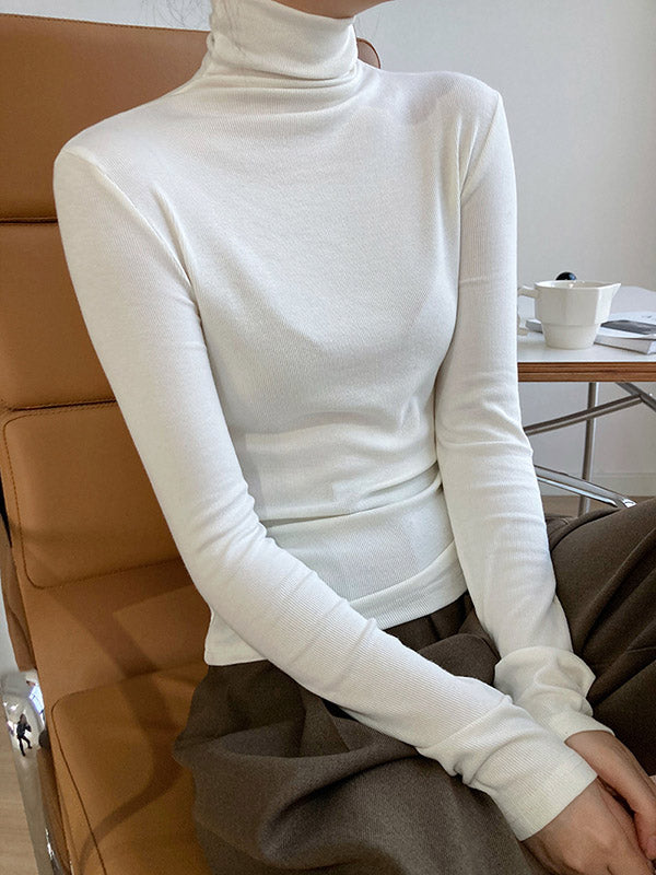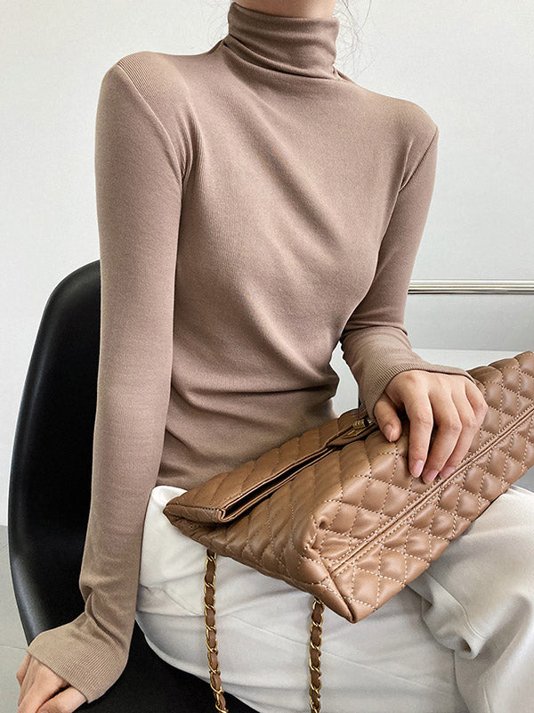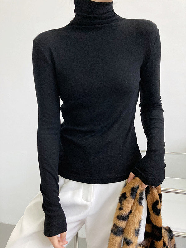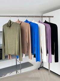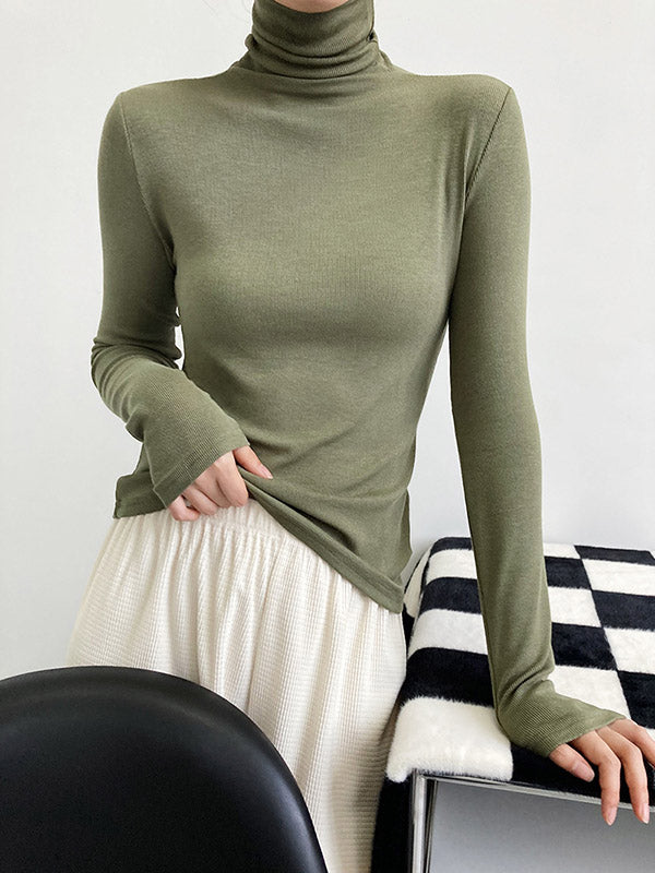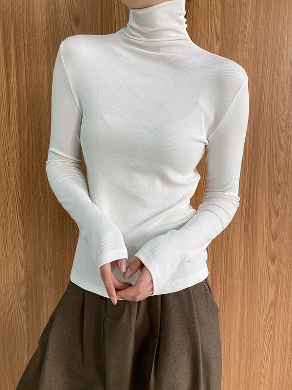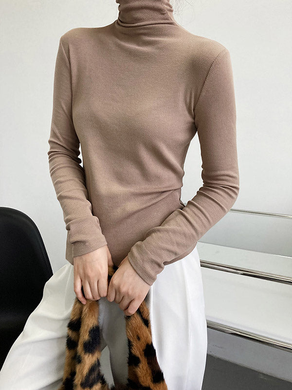 Simple 6 Colors Heaps Collar Long Sleeves Knitting T-Shirt Top
