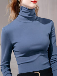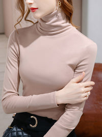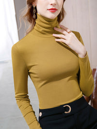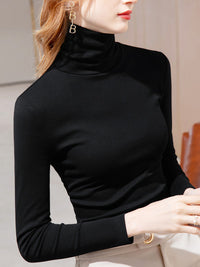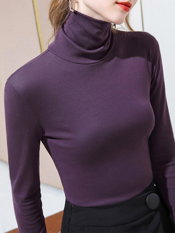 Simple 9 Colors High-Neck Long Sleeves T-Shirt Top