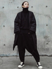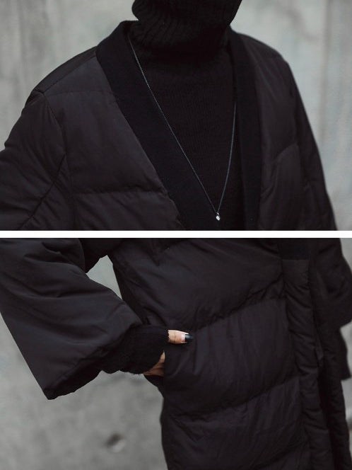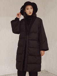 Simple Black Lace-up Cotton-padded Cloths Coat Outwear