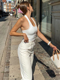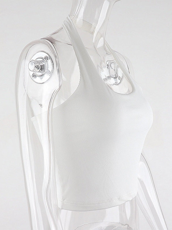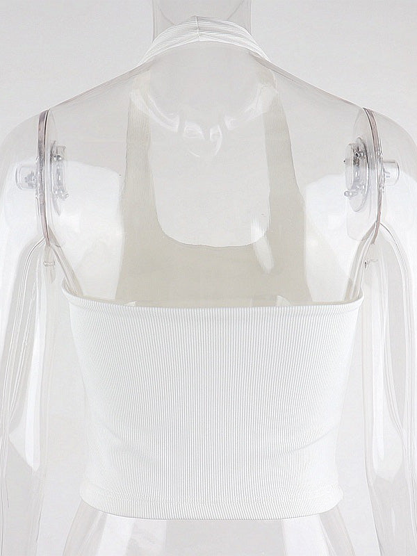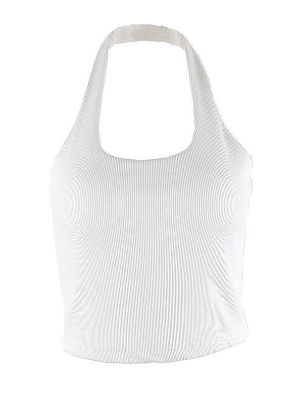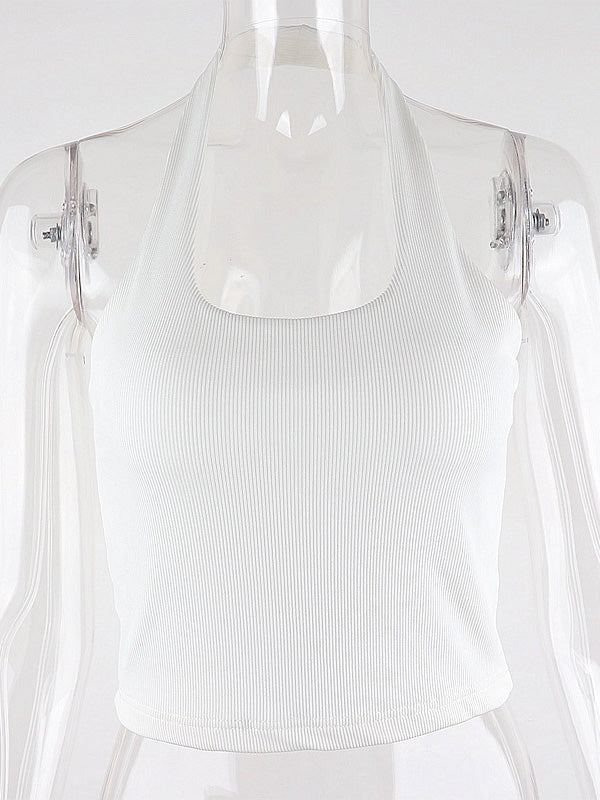 Simple Black&White Casual Sleeveless Halterneck Tanks