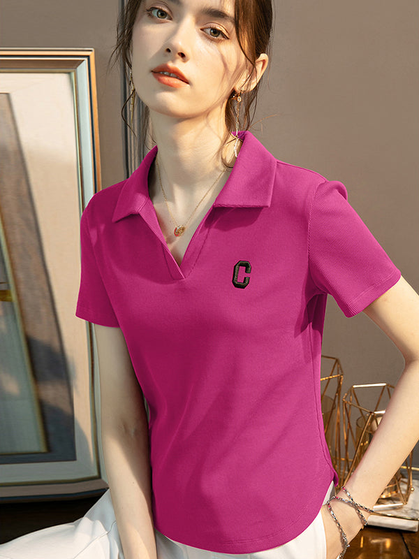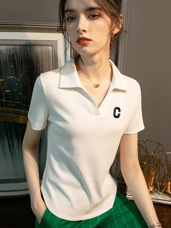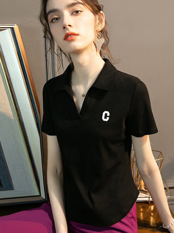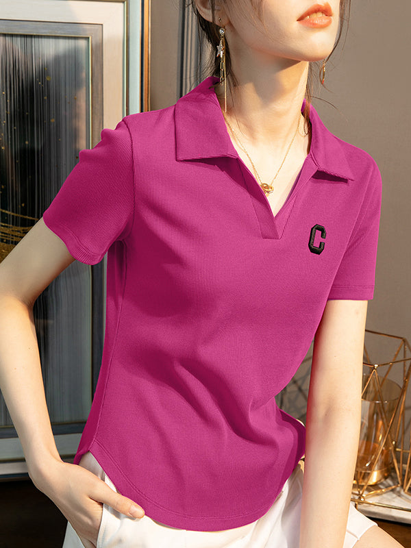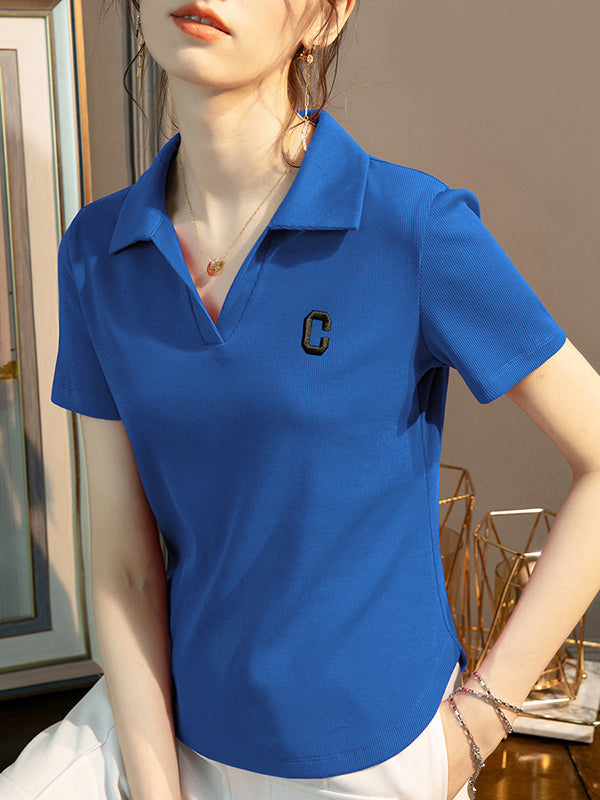Simple Casual Letter Embroidered Knitting T-Shirt Top