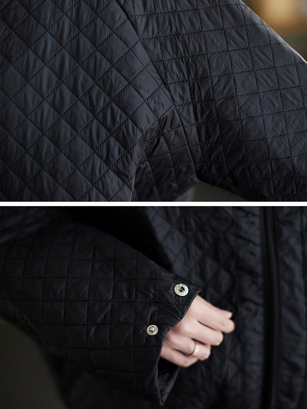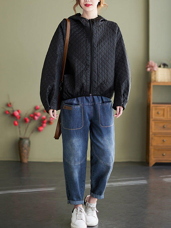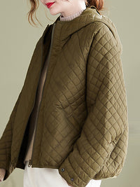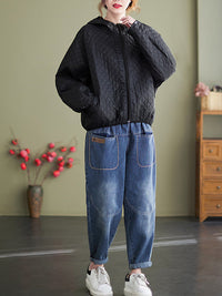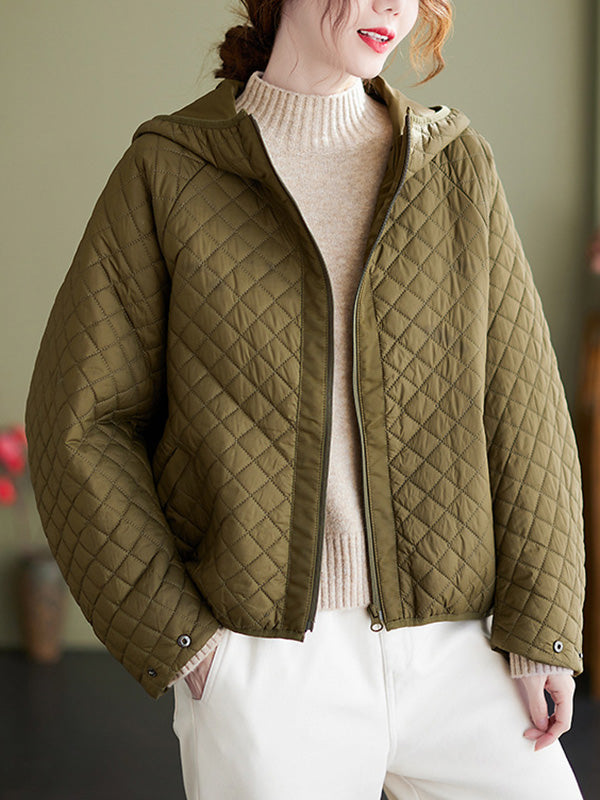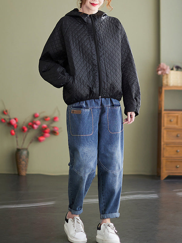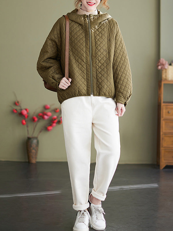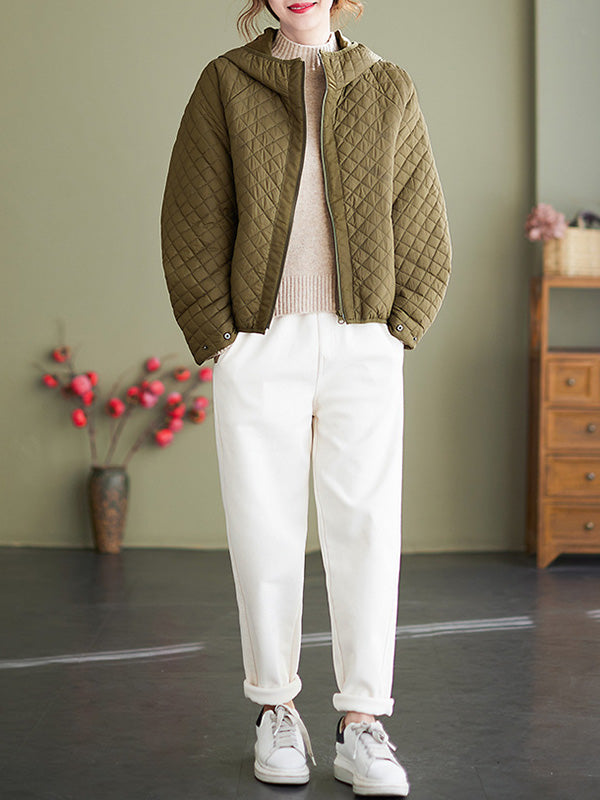 Simple Long Sleeves Loose Keep Warm Solid Color Zipper Hooded Padded Coat/Down Coat