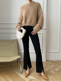 Simple Loose Long Sleeves Solid Color Round-Neck Sweater Tops