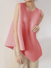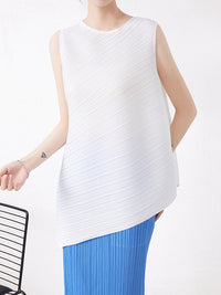 Simple Loose Sleeveless Pleated Asymmetric Solid Color Round-Neck Vest Top