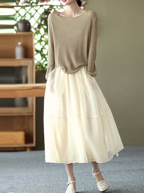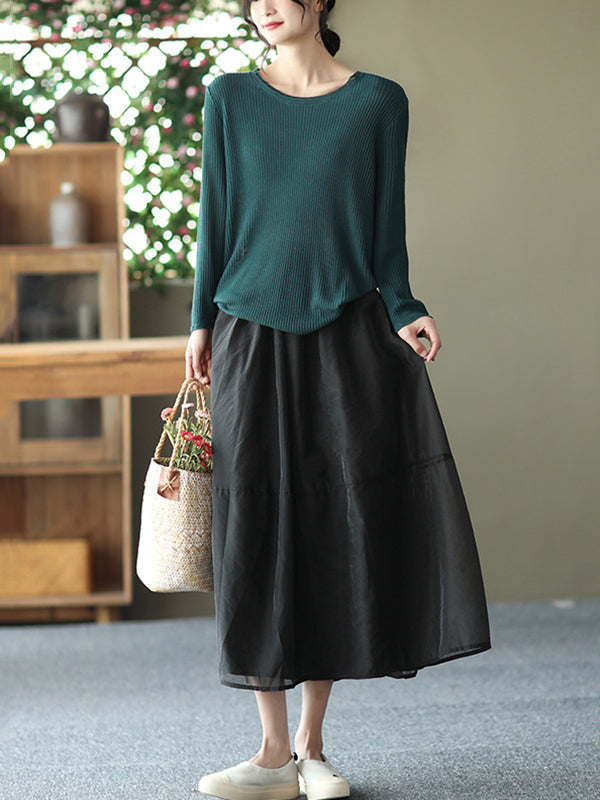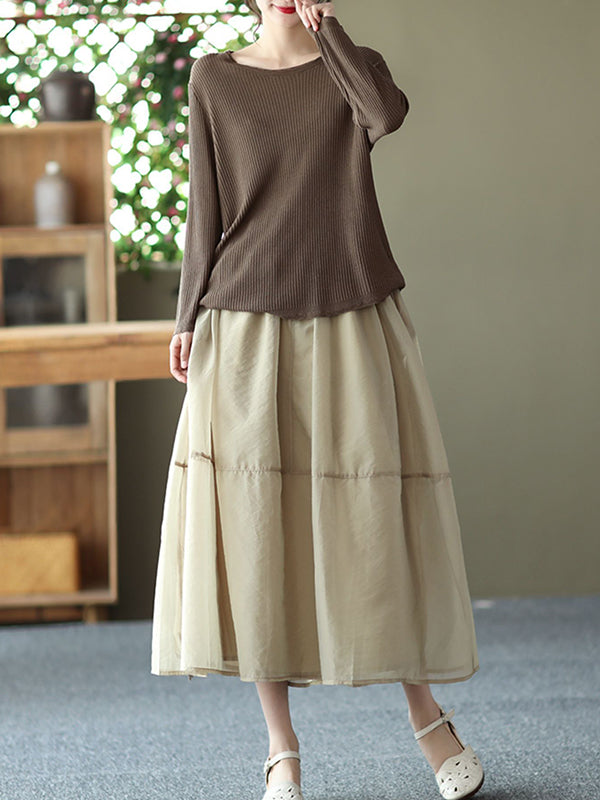 Simple Loose Solid Color Split-Joint Bubble Skirt