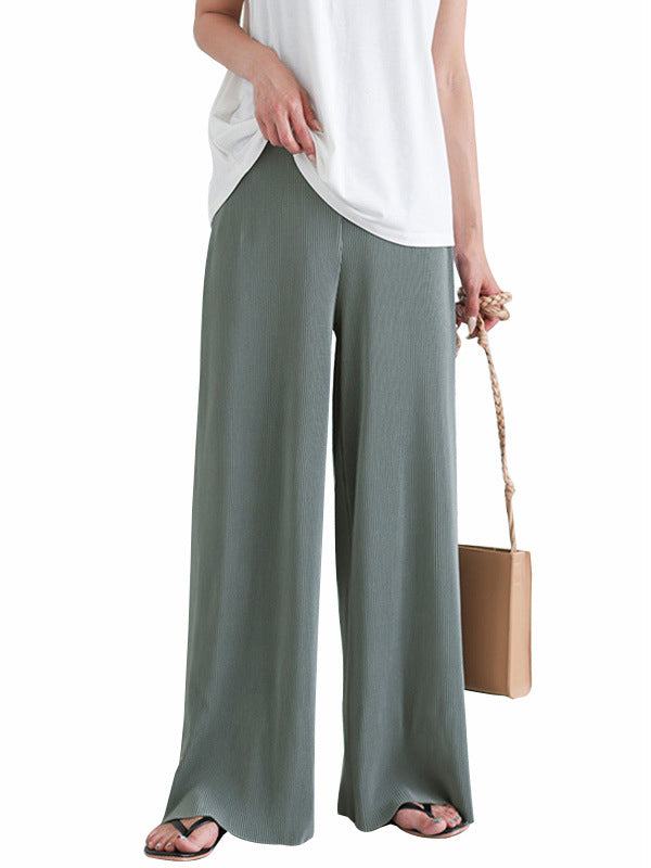 Simple Loose Wide Leg Elasticity Solid Color Casual Pants Bottoms