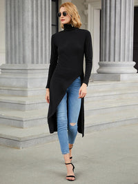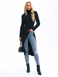 Simple Skinny Split-Side Solid Color High-Neck T-Shirts Tops