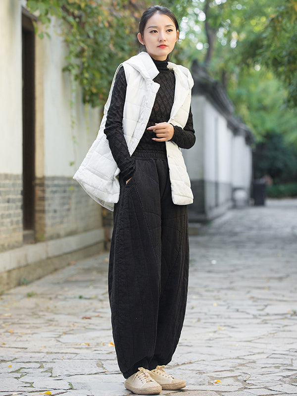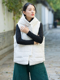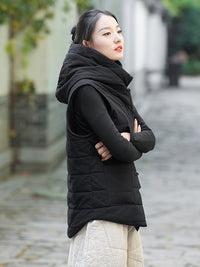 Simple Sleeveless Loose Keep Warm Cotton Quilted Solid Color Hooded Vest Outerwear