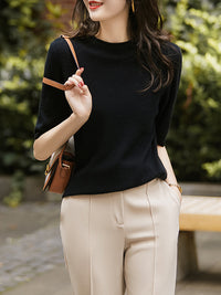 Simple Solid Color Round-Neck Short Sleeves Sweater