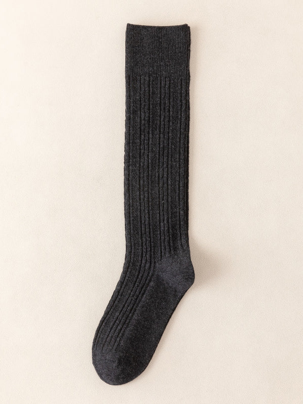 Simple Twist Wool Solid Color Mid-Calf Socks