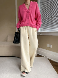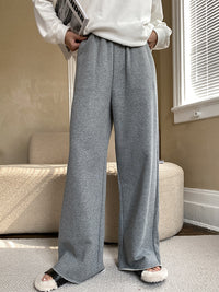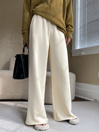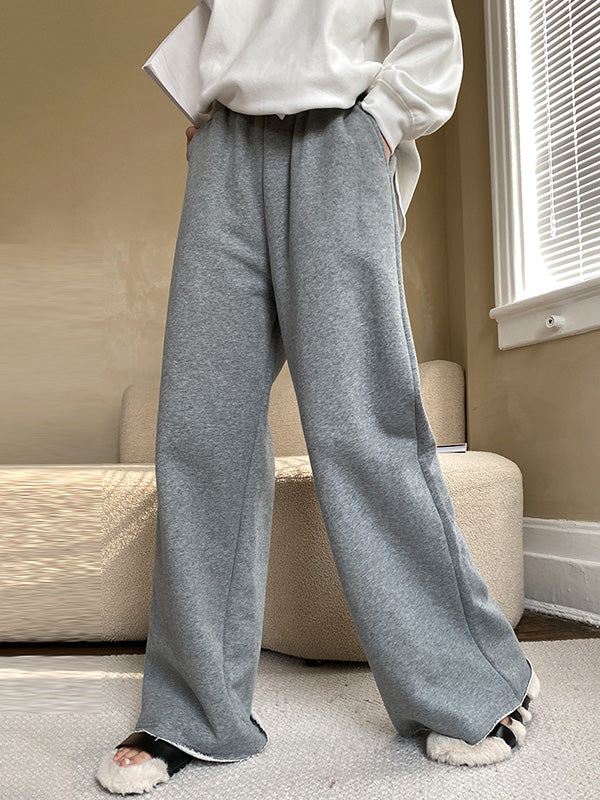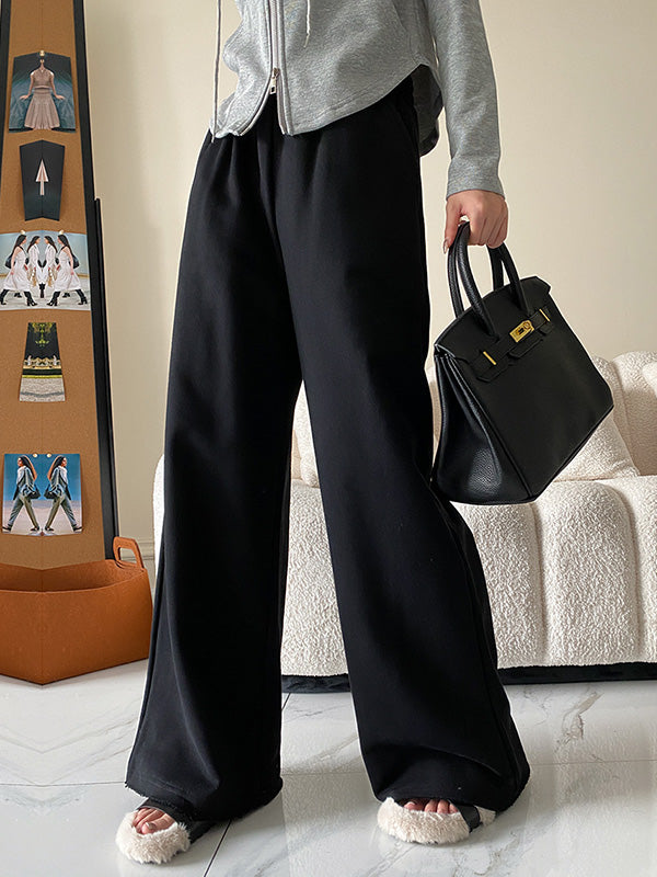 Simple Wide Leg Loose Velvet Keep Warm Solid Color Casual Pants Bottoms