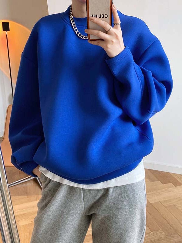 Solid Color Long Sleeves Loose Round-Neck Sweatshirt Tops