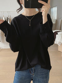 Solid Color Long Sleeves Loose Round-neck T-Shirts Tops
