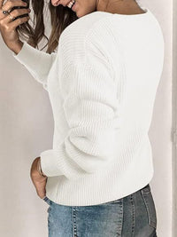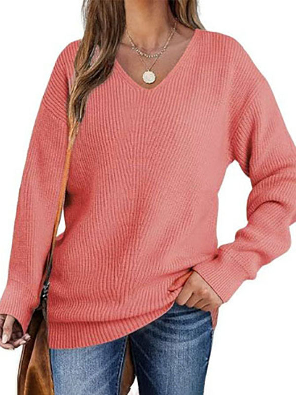 Solid Color Long Sleeves Loose V-Neck Sweater Tops Pullovers