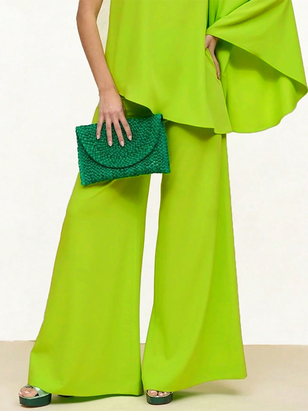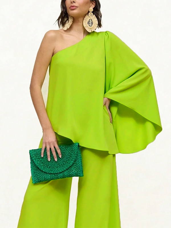 Solid Color Loose Wide Leg One-Shoulder T-Shirts Tops&Pants Bottoms Two Pieces Set