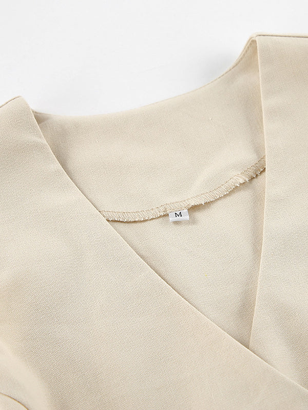 Solid Color Sleeveless Asymmetric Split-Joint V-Neck Vest Tops + Straight Leg Pants Suits Two Pieces Set