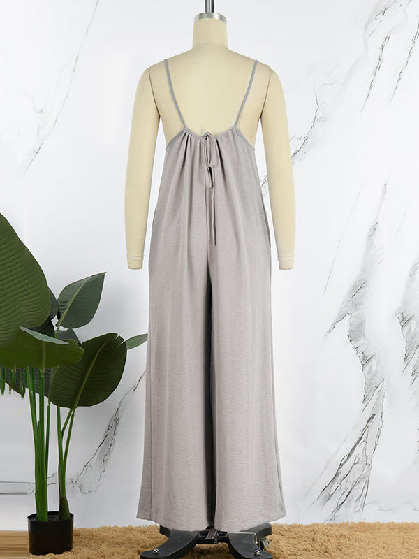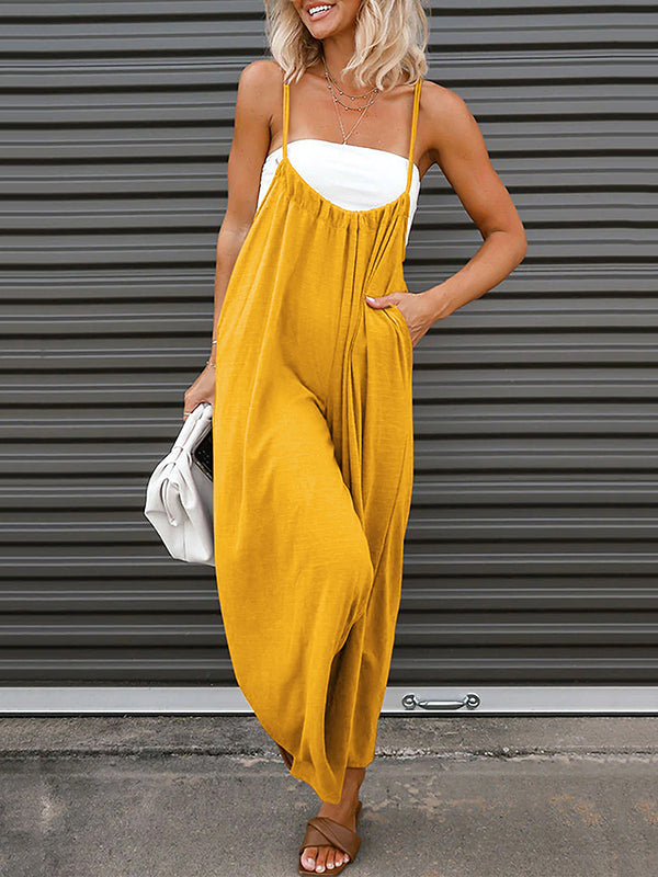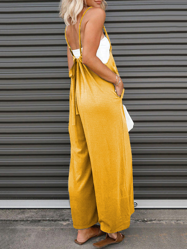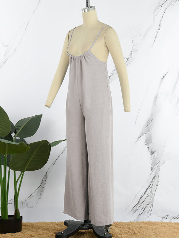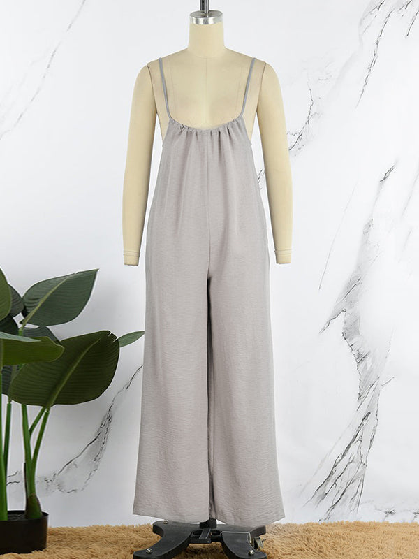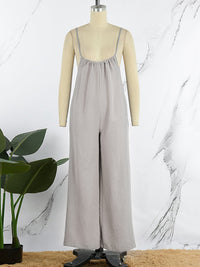 Solid Color Sleeveless Wide Leg Spaghetti-Neck Overalls
