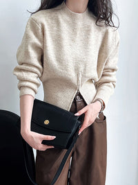 Solid Color Zipper Long Sleeves Loose Mock Neck Sweater Tops Pullovers