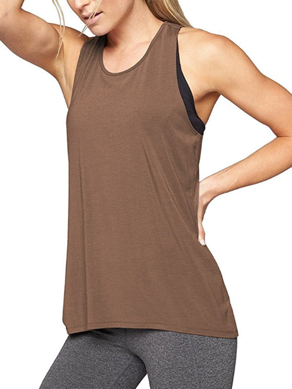 Sports Solid Color Yoga Wear Round-Neck Vest