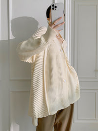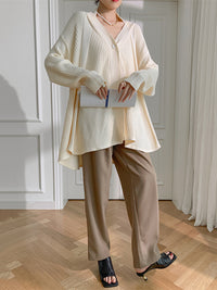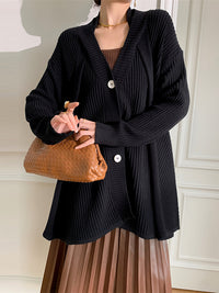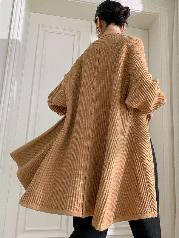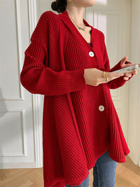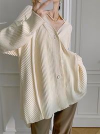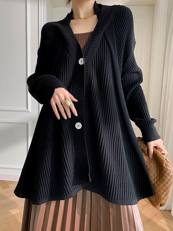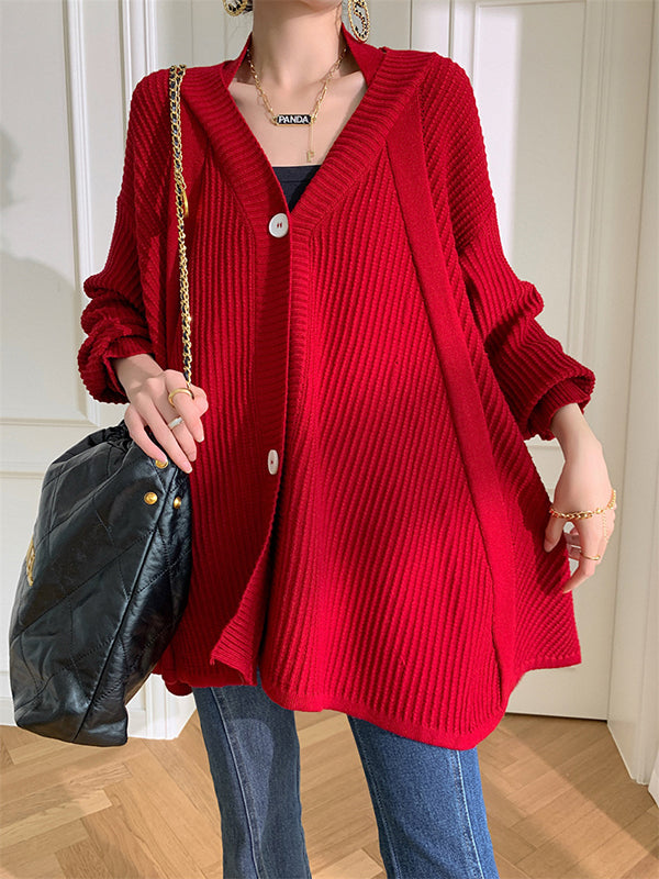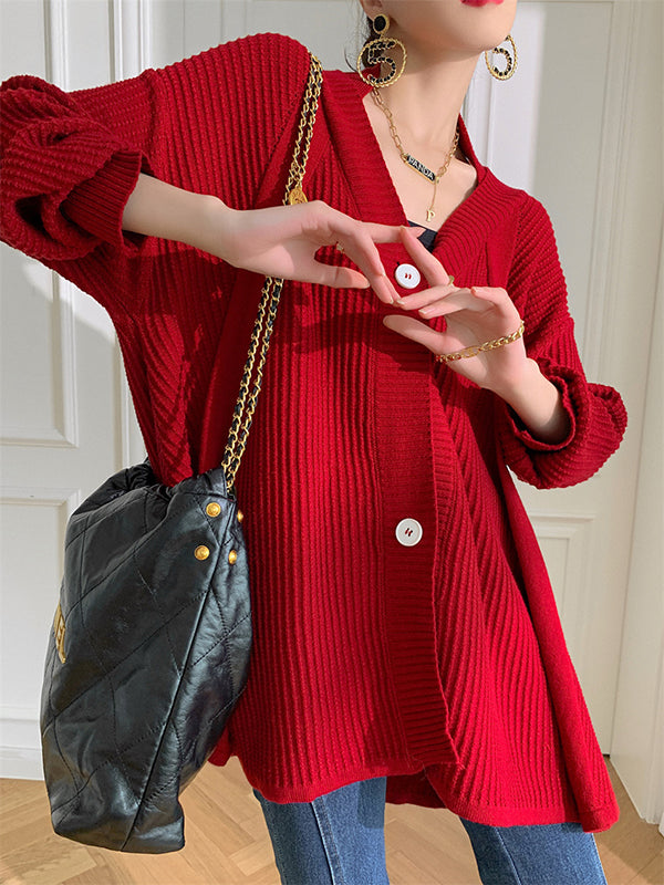 Stylish A-Line Long Sleeves Loose Solid Color V-Neck Cardigan Tops