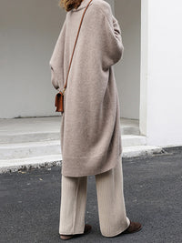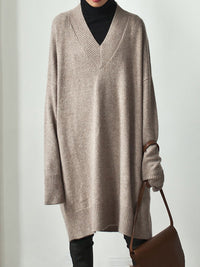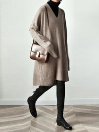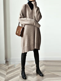Stylish Long Sleeves Loose Solid Color V-Neck Sweater Dresses