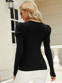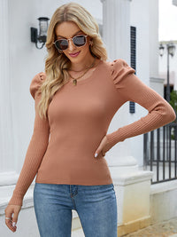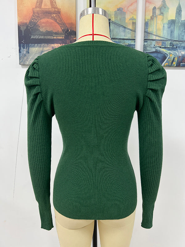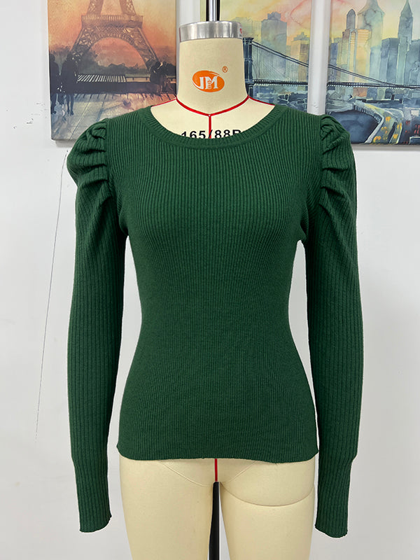 Stylish Long Sleeves Skinny Pleated Solid Color Round-Neck Sweater Tops