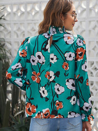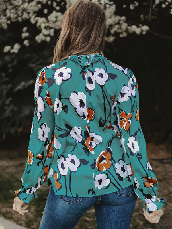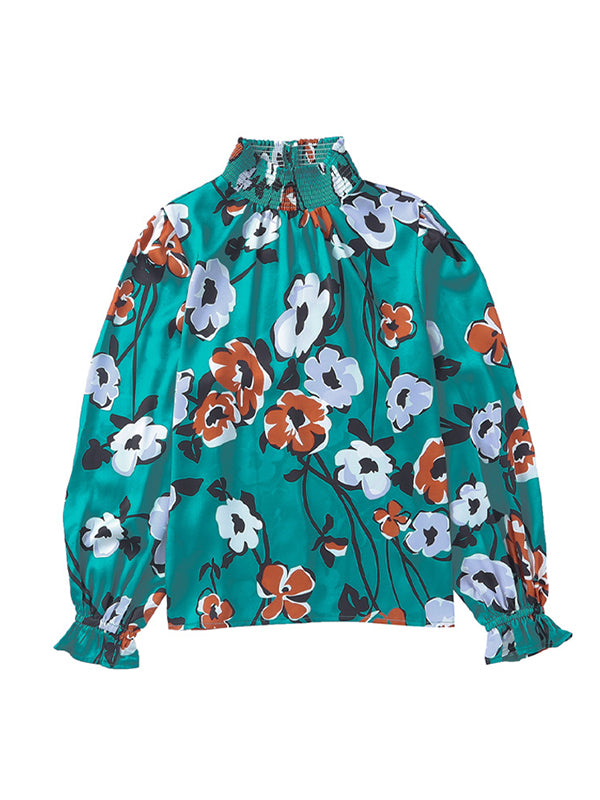 Stylish Selection Long Sleeves Loose Printed Pleated Half Turtleneck Blouses&Shirts Tops