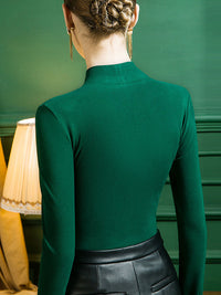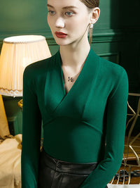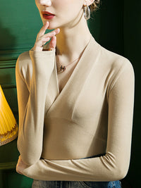 Stylish Selection Skinny Long Sleeves Solid Color V-Neck T-Shirts Tops