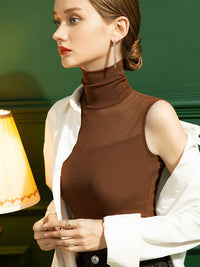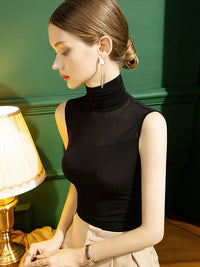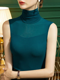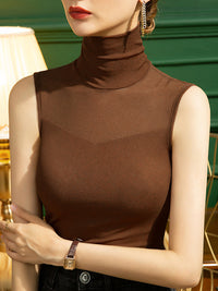 Stylish Skinny Sleeveless Mesh Split-Joint Solid Color High-Neck Vest Top